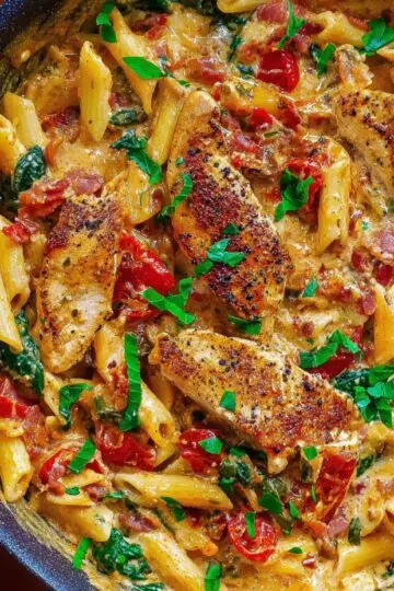- Chicken Bacon Pasta with Spinach and Tomatoes