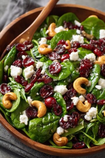 - Cranberry Spinach Salad with Cashews and Goat Cheese
