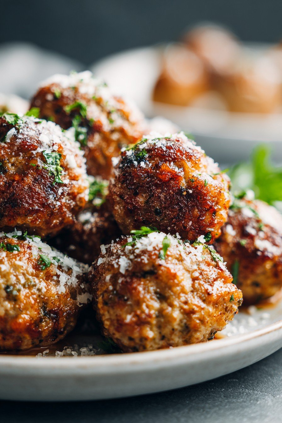 In a large mixing bowl, combine ground chicken, breadcrumbs, Parmesan, egg, milk, parsley, garlic, onion powder, salt, and black pepper. Mix gently with clean hands or a fork until just combined—don't overwork it.