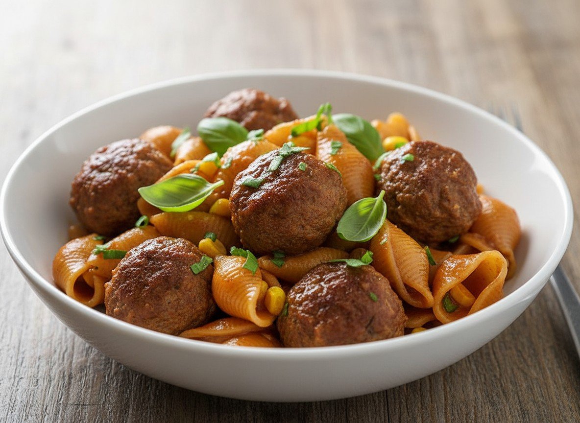 - Gently add cooked meatballs, nestling them into the sauce and pasta. Simmer uncovered for 5 minutes to heat through.