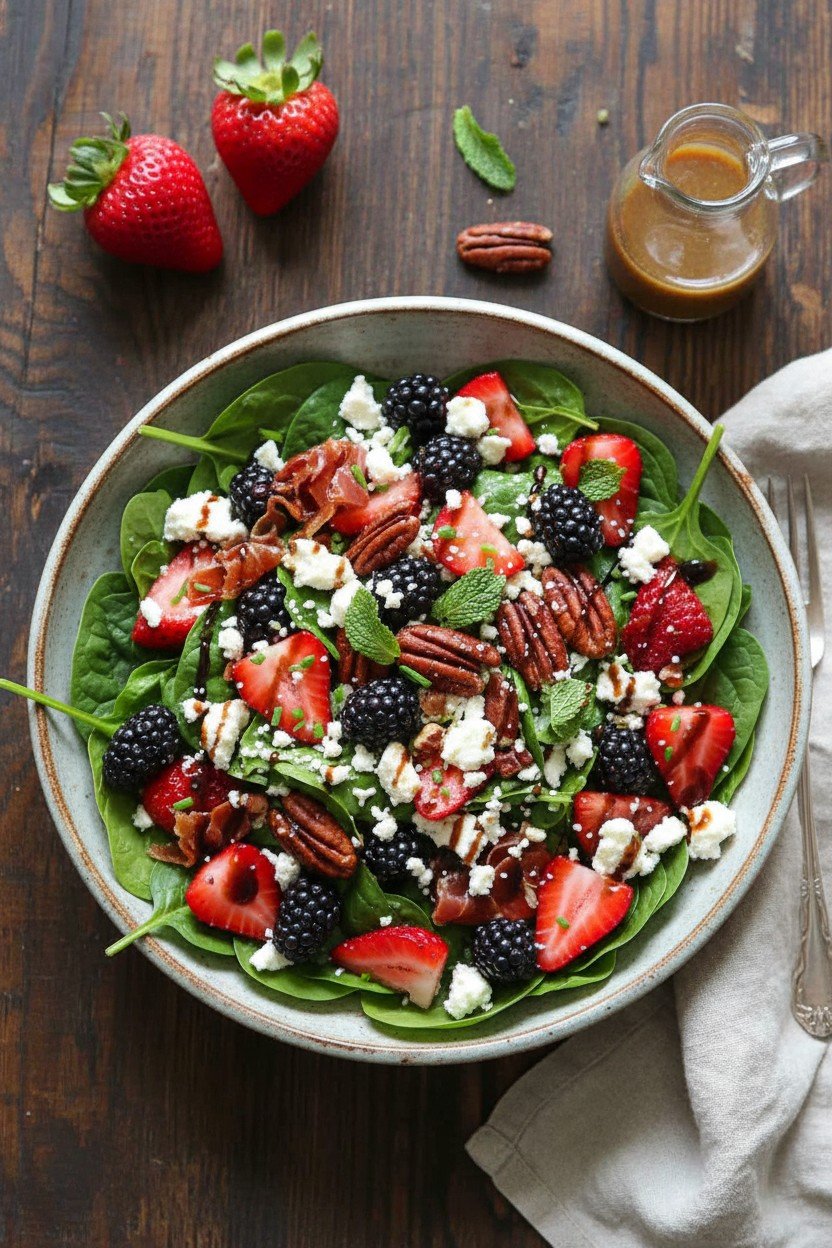 Hey y'all! Ready for a refreshingly vibrant salad that shows off the best of summer flavors? This berry spinach salad with pecans, feta, and balsamic glaze is bursting with juicy berries, creamy feta, and crunchy pecans, all tied together with a sweet-and-tangy balsamic drizzle. It's ideal for picnics, BBQs, brunch, or any meal when you want something both nourishing and delicious. Let’s get cooking!