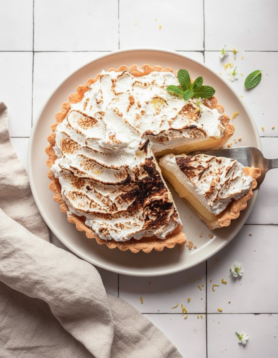 - Buttery, crisp shortcrust pastry provides the perfect contrast to the silky curd and fluffy meringue.