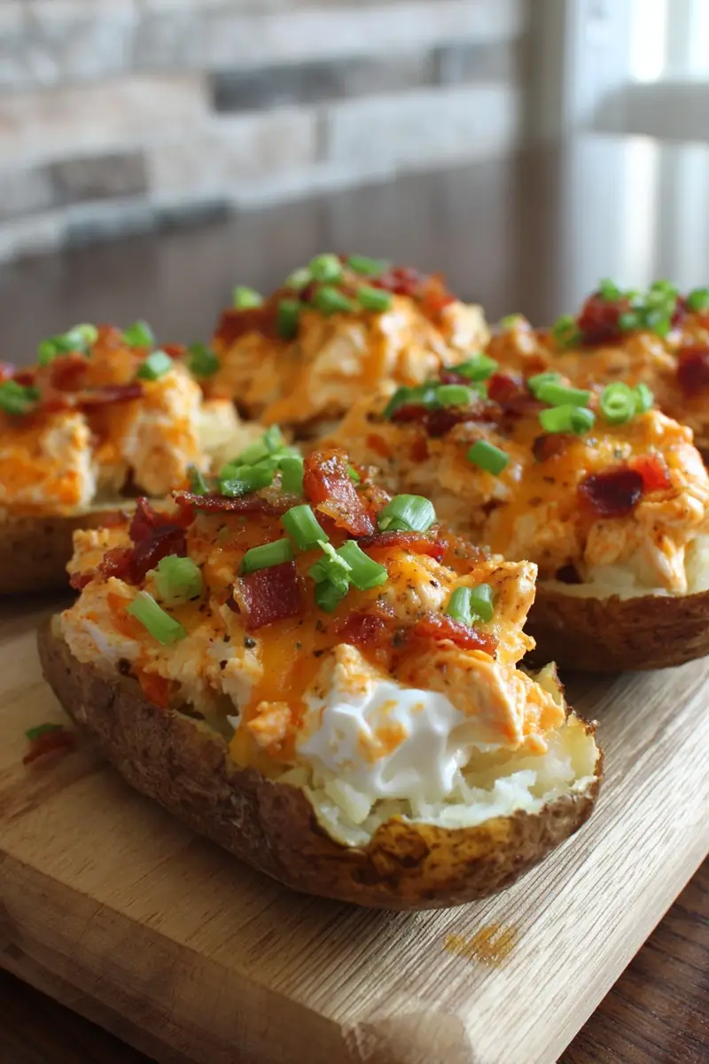 - Vegetarian Buffalo Twice Baked Potatoes: Substitute shredded jackfruit or cauliflower for the chicken.