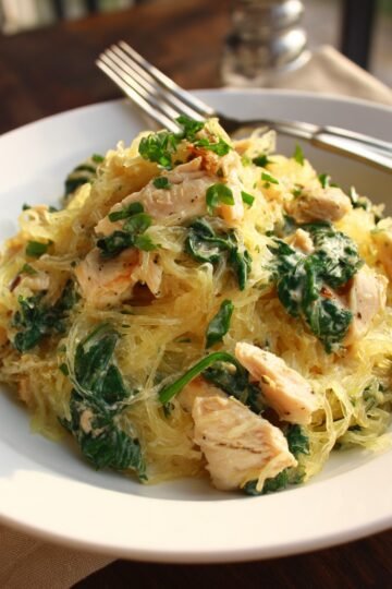 Chicken and Spinach Spaghetti Squash Alfredo
