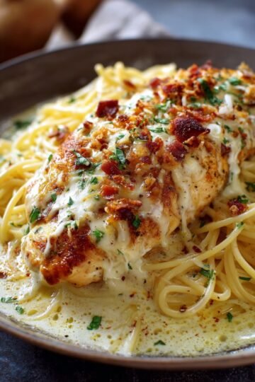 Chicken Smothered in Cheesy Alfredo Three-Cheese Spaghetti Sauce