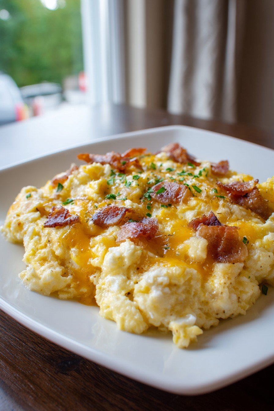 - Meaty Scramble: Stir in cooked bacon or sausage with the onions for a heartier meal.