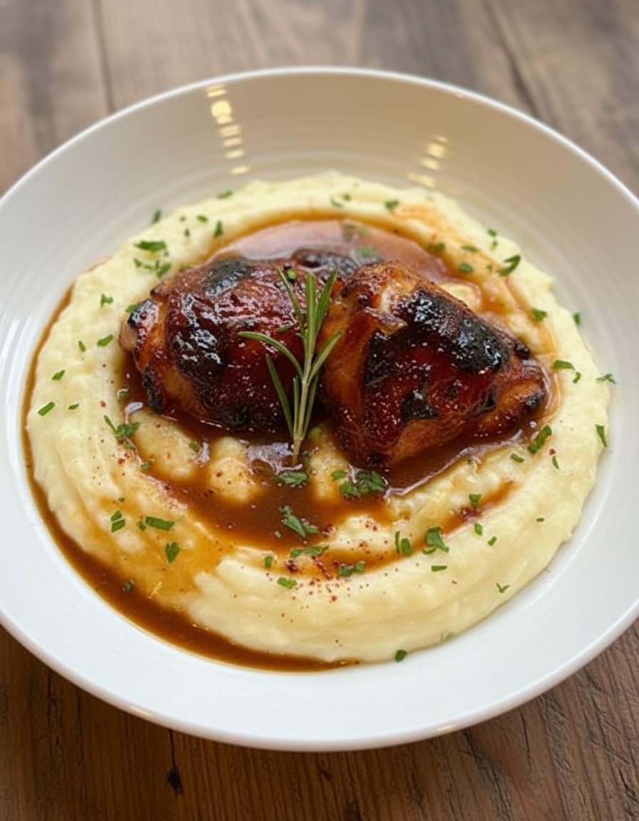 Chipotle Honey Chicken Thighs with smoked couda mashed potatoes