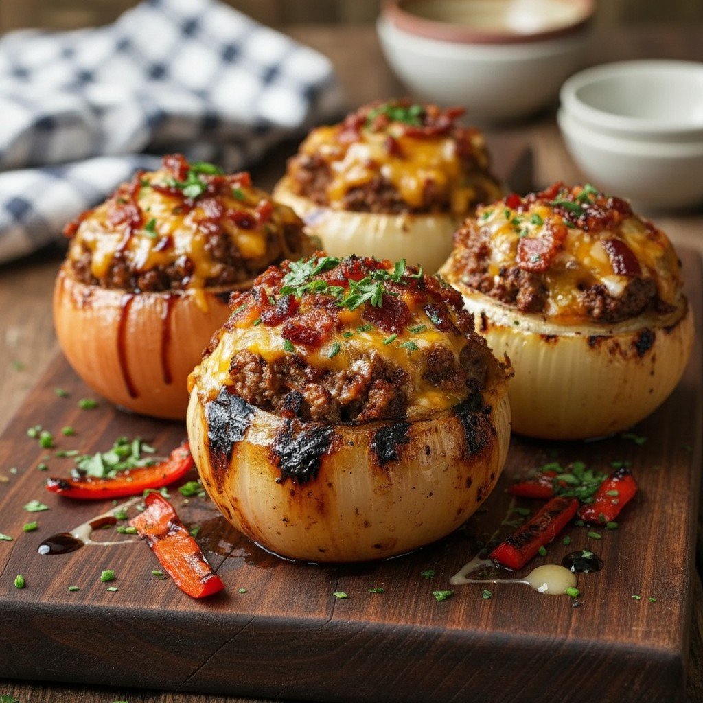 Hey y'all! If you love bold flavors, a touch of spice, gooey cheese, and smoky bacon all rolled into one bite, you’re in for a treat with these Firecracker Bacon Cheddar Cheeseburger Stuffed Onion Bombs. They’re ridiculously savory, dripping with cheddar melted inside a juicy beef core, snuggled in a tender onion, and hugged by crispy bacon. Perfect for summer barbecues, game day appetizers, or anytime you want to wow your friends and family, these stuffed onion bombs are a total crowd-pleaser. Let’s get cooking!
