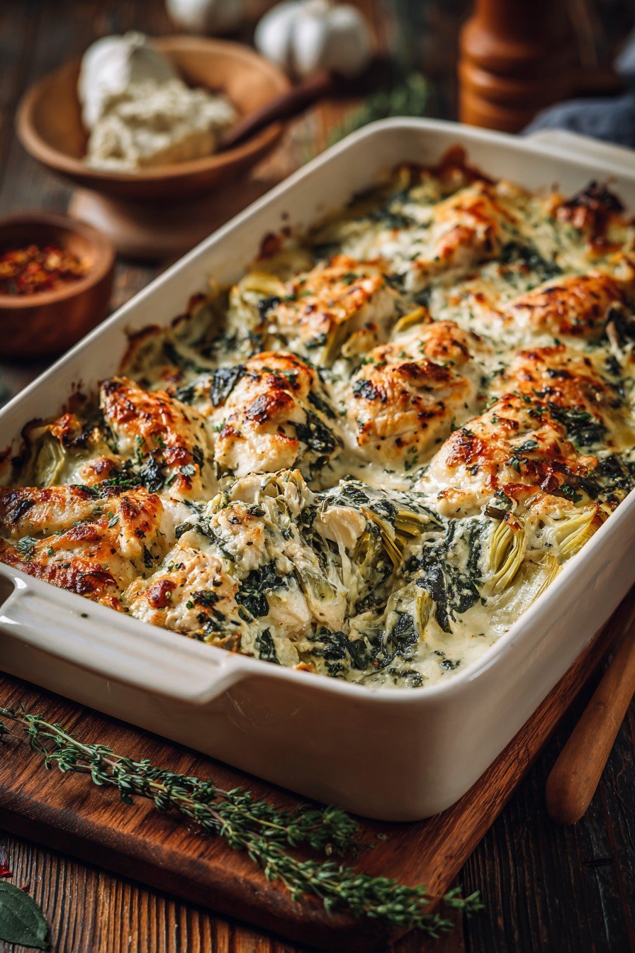 Hey y'all! Looking for a dinner that's both hearty and healthy? This Healthy Spinach Artichoke Chicken Bake brings together creamy, cheesy goodness with loads of veggies and lean chicken breast. It's the perfect recipe for family nights, meal prep, or impressing friends at your next gathering. Juicy chicken, tender spinach, and flavorful artichokes come together in every delicious bite. Let's get cooking!