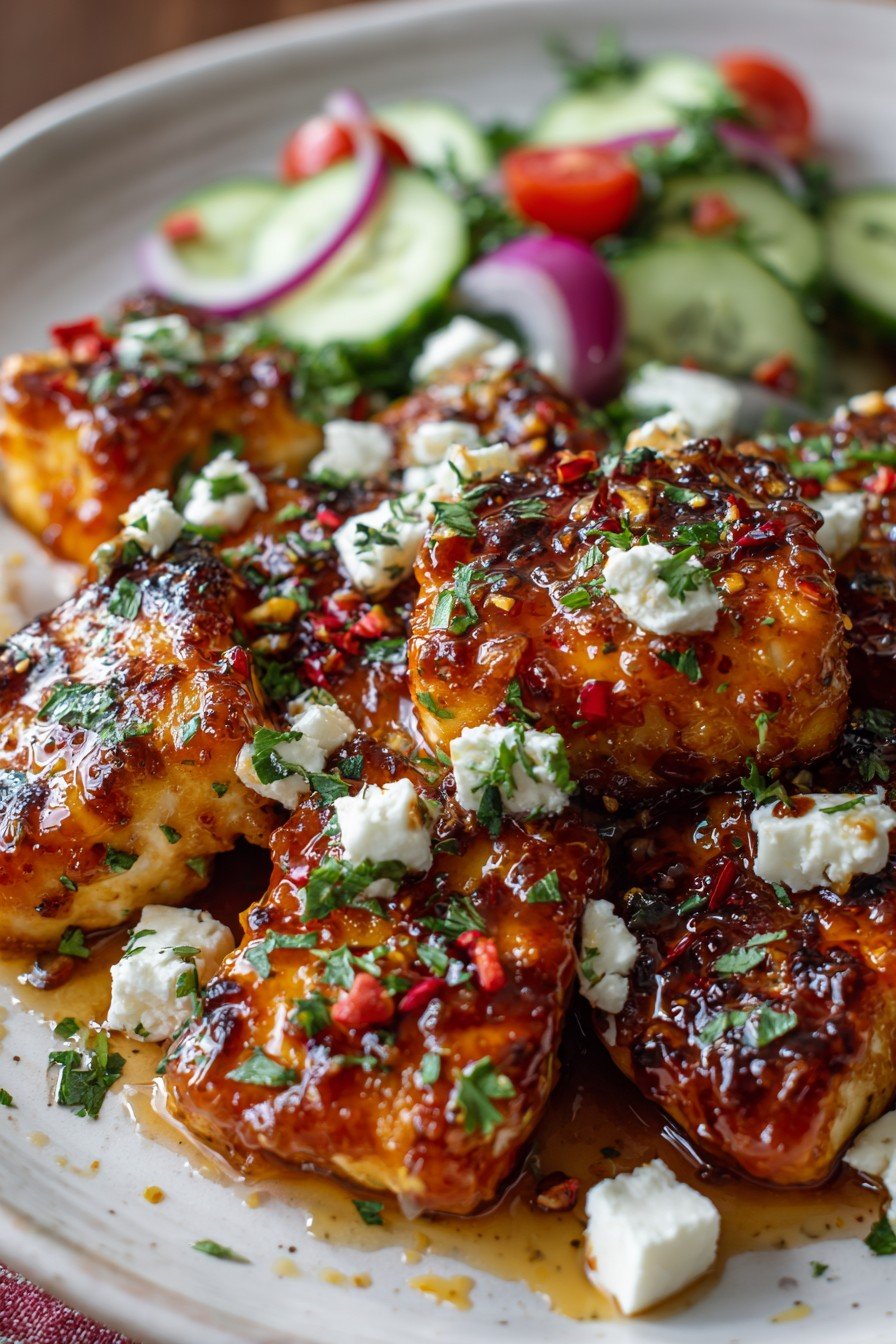 - Grilled Version: Grill chicken instead of baking for smoky undertones, then top with feta and hot honey off the grill.