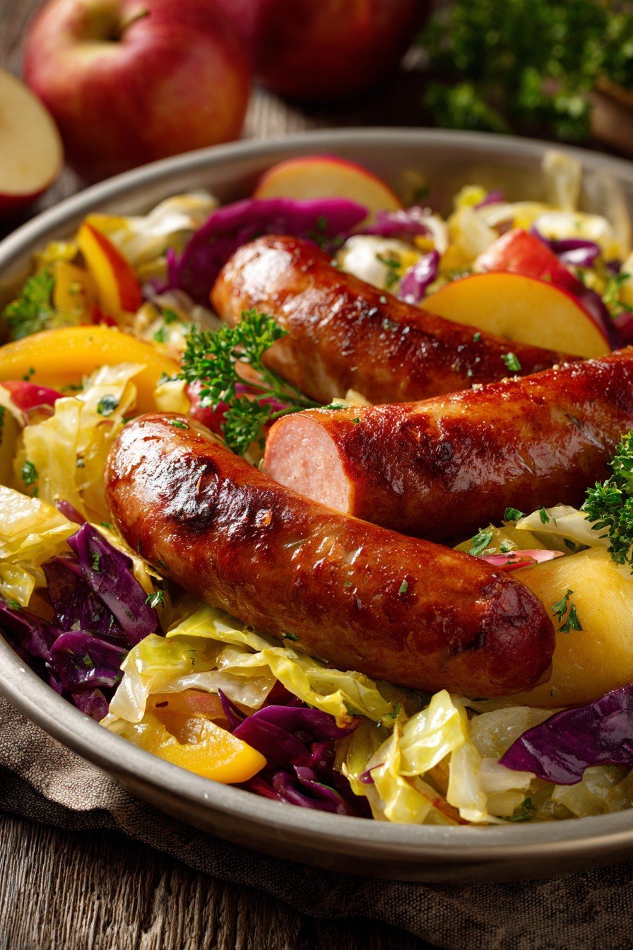 - Flavorful balance of sweet apples, savory kielbasa, and tender cabbage.