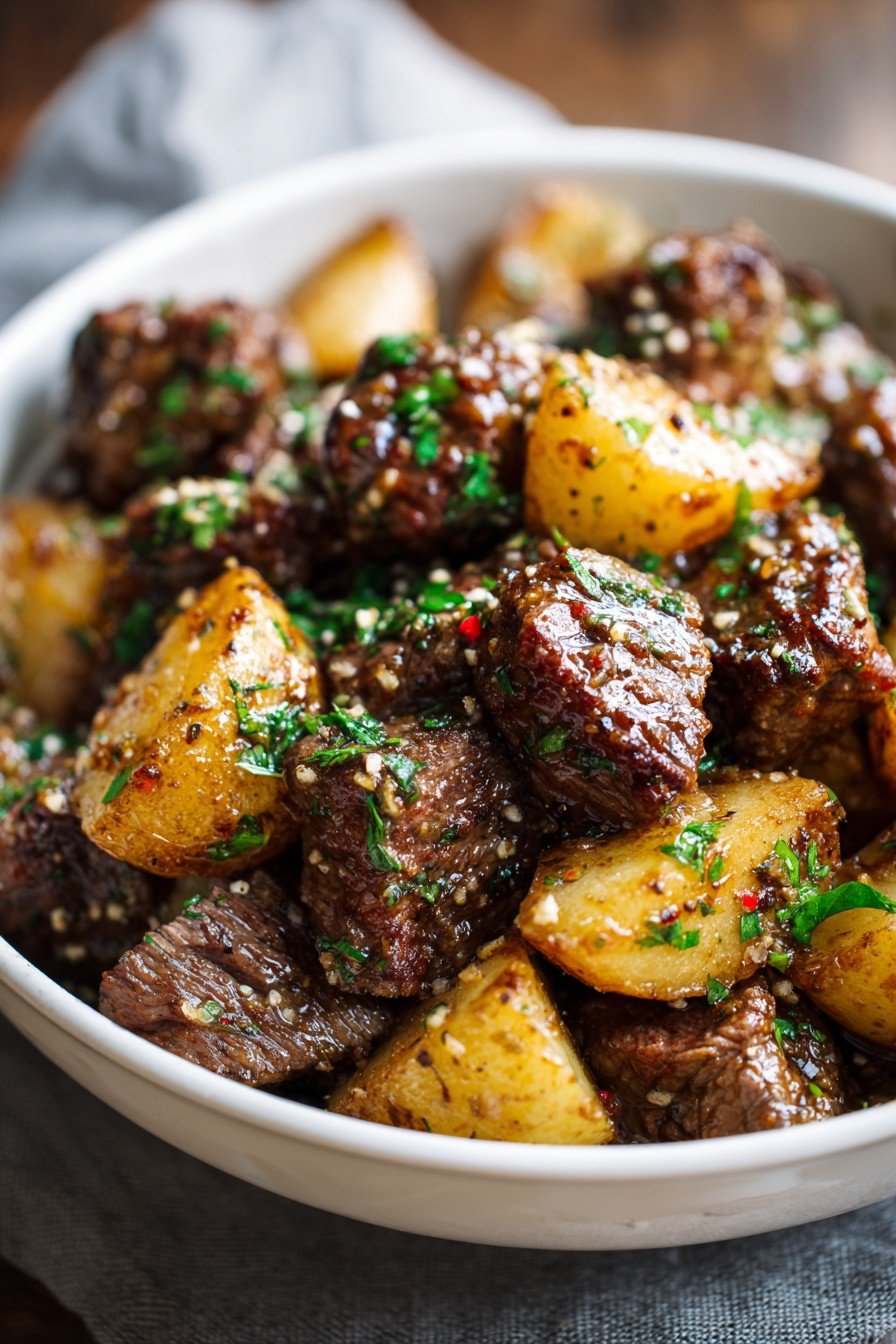 - Rich, garlicky flavor: Garlic and butter soak into every bite, making both beef and potatoes irresistible.