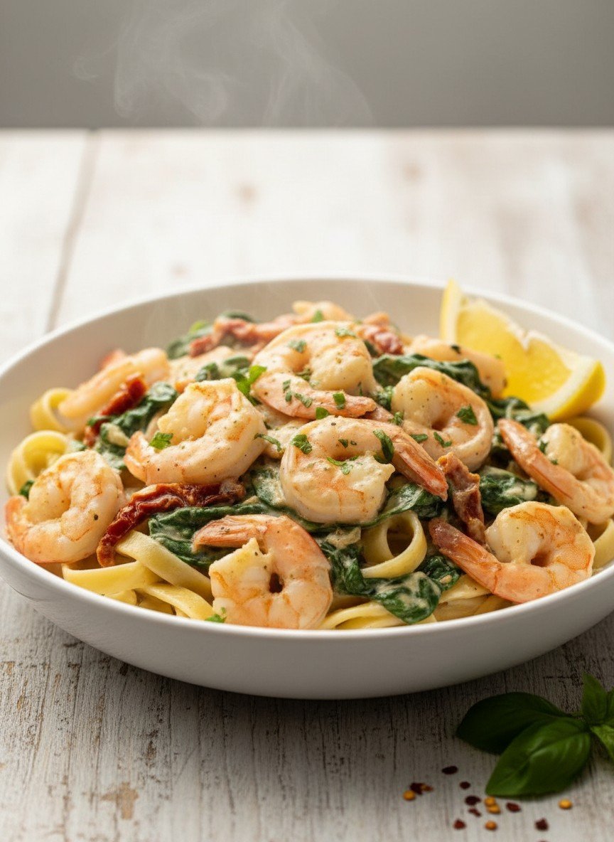 Hey y'all! If you're craving a restaurant-worthy pasta dish that comes together in under an hour, this Tuscan Shrimp Ravioli with Sun-Dried Tomatoes and Spinach is the answer. Imagine juicy shrimp, pillowy cheese ravioli, and vibrant sundried tomatoes wrapped in a creamy garlic sauce—with little pops of spinach for freshness! This meal is perfect for fancy date nights at home, family dinners, or impressing your friends. Let's get cooking!