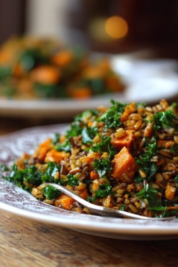 - Caramelized Sweet Potato and Kale Fried Wild Rice